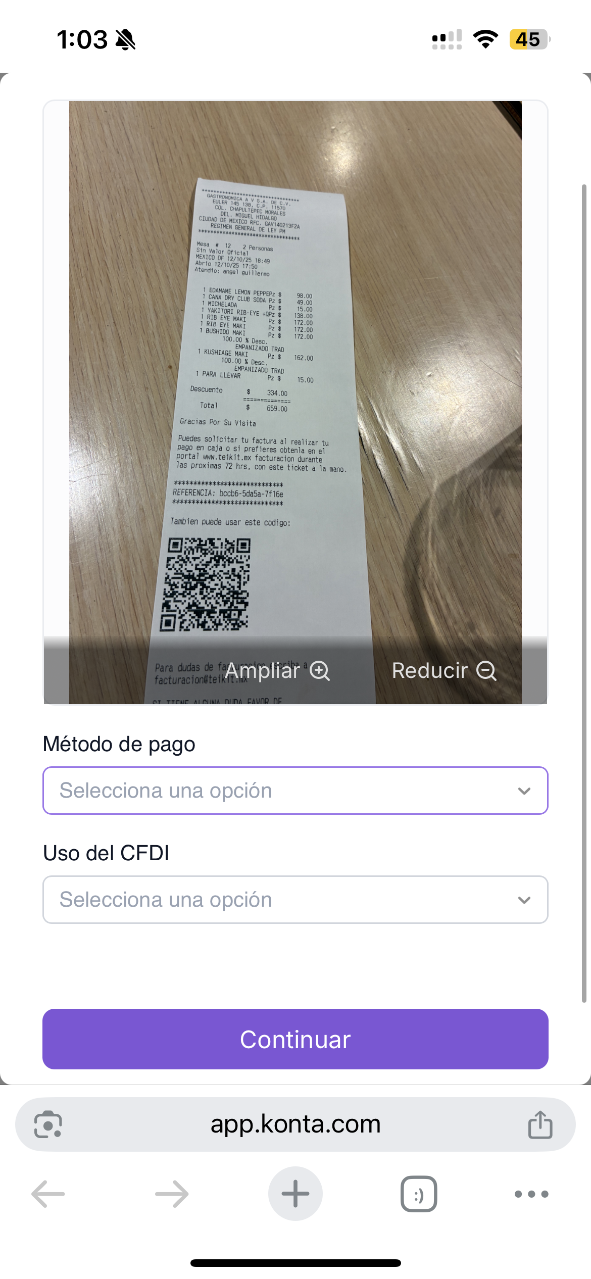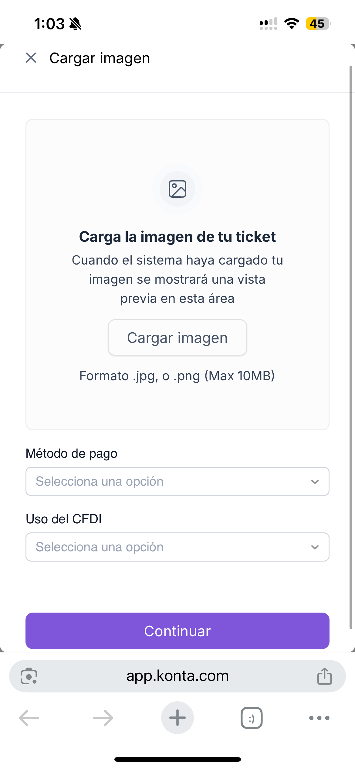 Una vez que los campos estén llenos, solo tienes que presionar el botón morado de "Continuar".